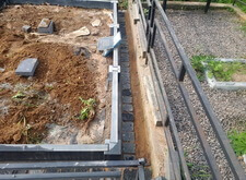 По периметру участка монтируем гранитный цоколь, состоящие из балок секции которого будут разделены невысокими столбиками.