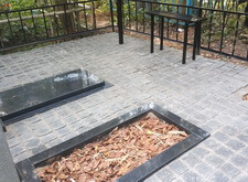 замостили внутреннюю территорию брусчаткой и поставили лавочку со столиком. После окончания работ надписи на памятниках были дополнительно обработаны акриловой краской, это защитит их от пропадания в дождь и от пятен пыльцы растений и грязи.