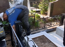 К сожалению, в самый разгар работы нас застал дождь. Так как реставрация требовала сухой погоды, то мы закрыли место захоронения плёнкой и покинули кладбище, отложив восстановление на несколько суток.