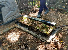 Затем мы демонтировали цветник и подрезали ему балку. В дальнейшем он изменит форму и будет занимать значительно меньше места, хотя площадь клумбы и останется прежней.